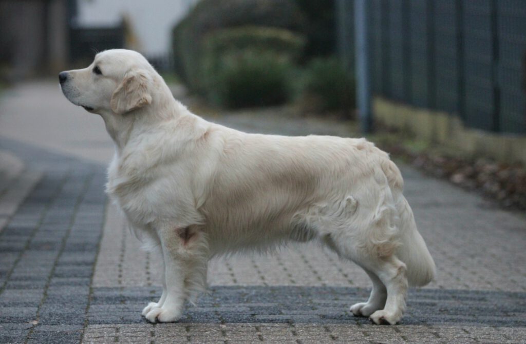 13 Monate alter cremefarbener Rüde, vorzüglicher Kopf mit sanftem Ausdruck, vorzügliche Winkelung, vorzügliche Hals-Rückenlinie, breits gut entwickelter Brustkorb, vorzügliche Knochenstärke, sehr gute Fellanlage, bewegt sich mit gutem Vortritt und mit sehr gutem Schub aus der Hinterhand, harmonische Gesamterscheinung mit vorzüglichem Wesen. Vorzüglich Richter: Martin Kopfer |
